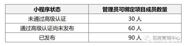 登录智能小程序平台,进入平台首页-成员管理,添加智能小程序项目成员并配置成员权限,一个智能小程序只能添加一名管理员。小程序处在不同的状态,可绑定的项目成员数量不同,具体内容如下表: